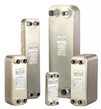 Brazed plate heat exchangers are a popular option with their compact size and high efficiency design. Brazed plate units are up to six times smaller than alternative methods of heat exchange with the same capacity. The significance lies in their unique construction of stainless steel plates brazed together with every plate turned 180 degrees in opposition to each other. This design creates two highly turbulent fluid channels that flow in opposite directions over a massive surface area with significantly higher heat transfer coefficient over less required surface area. |